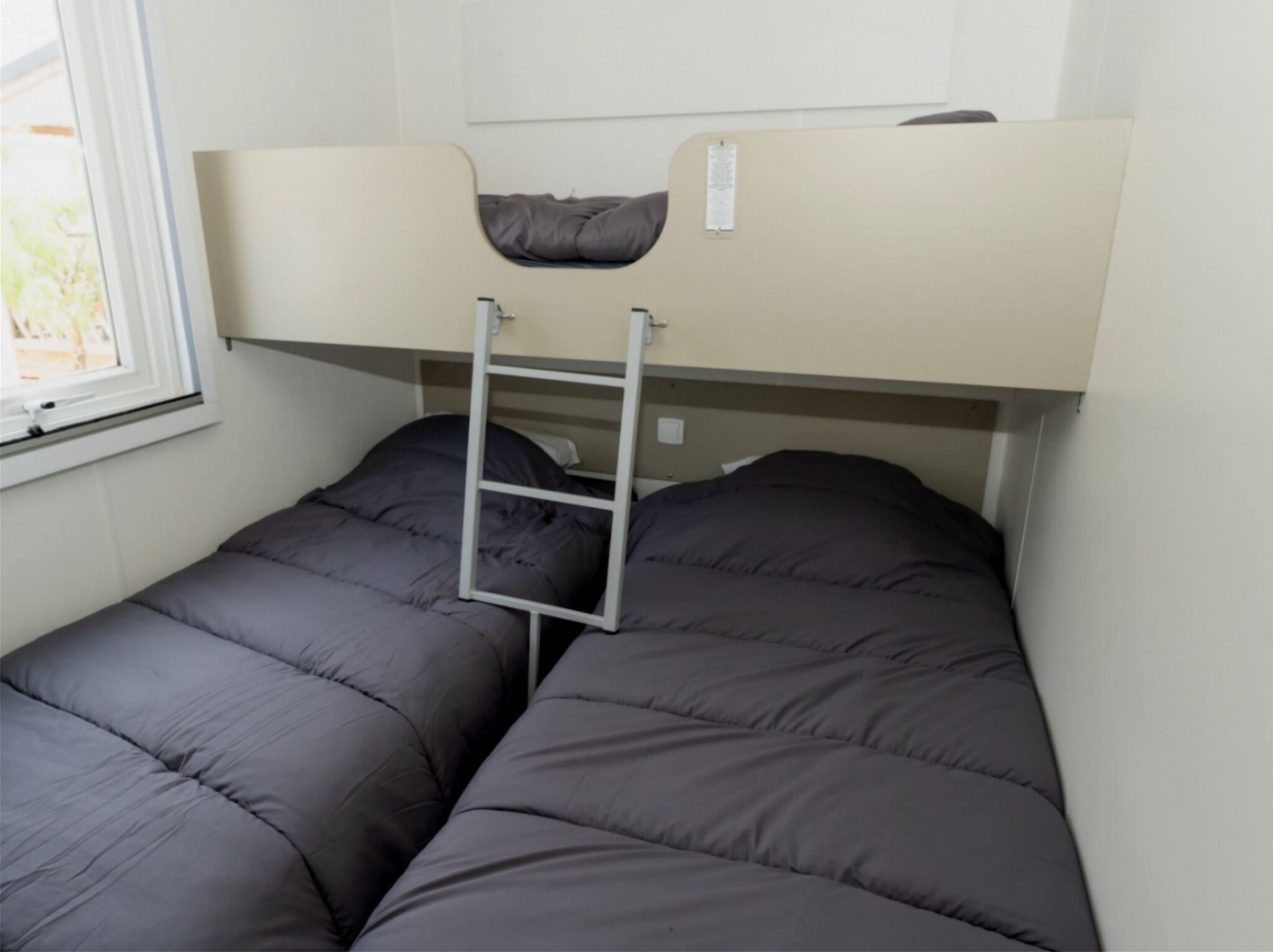 Coin nuit : une chambre avec 1 lit double (140×190), une chambre avec 2 lits simples (80×190) côte à côte, oreillers et couvertures et/ou couettes fournis.